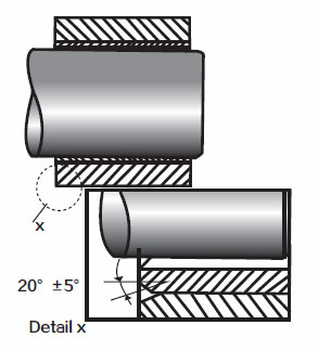 關(guān)于翻邊套,從翻邊套口到軸向轉(zhuǎn)換組件必須考慮半徑的轉(zhuǎn)變,切面要有—個(gè)足夠大的倒角。以防翻邊套口聚集污垢后仍然可以支持軸向載荷部件的邊緣。